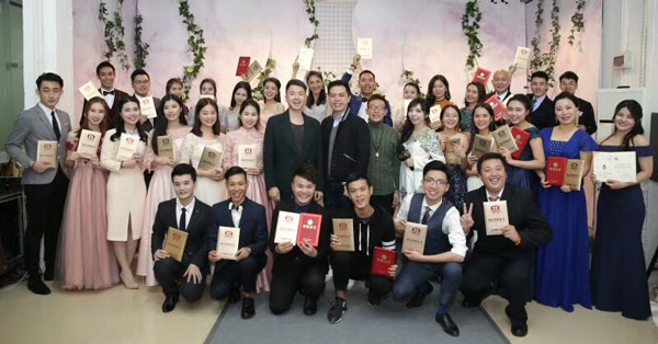 在热烈的掌声中,在校方领导等一行人和协会领导以及59一63期婚礼主持人、婚庆商家的见证下,广州市白云工商技师学院我校领导服装系主任江少容,就业部主任指导中心陈心为先生分别与广东婚协常务副会长兼秘书长林雪吟女士授牌。