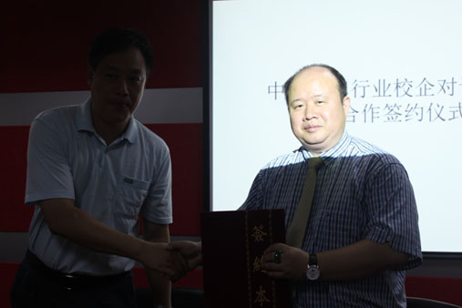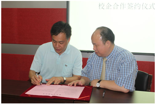 图1 皮具专业黎福明主任与广东新濠畔集团董事长刘穗龙校企合作签约